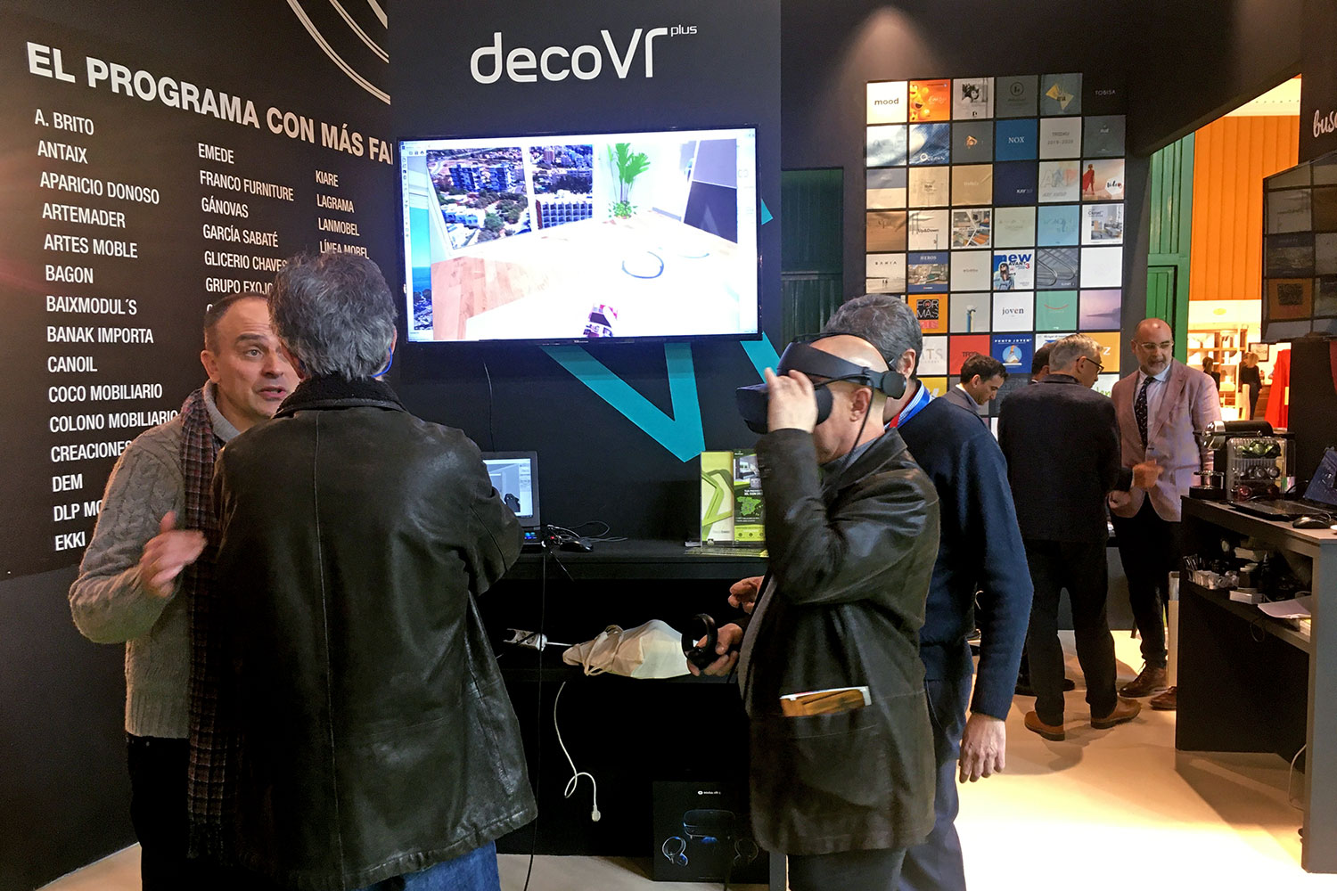 En estos 4 días de Feria ha sido constante la asistencia de visitantes a nuestro stand situando en el pabellón 4. A su llegada, rápidamente quisieron probar y descubrir el nuevo servicio Deco VR, con el que se sumergieron en el estimulante mundo de la realidad virtual, aplicado al mundo del amueblamiento.